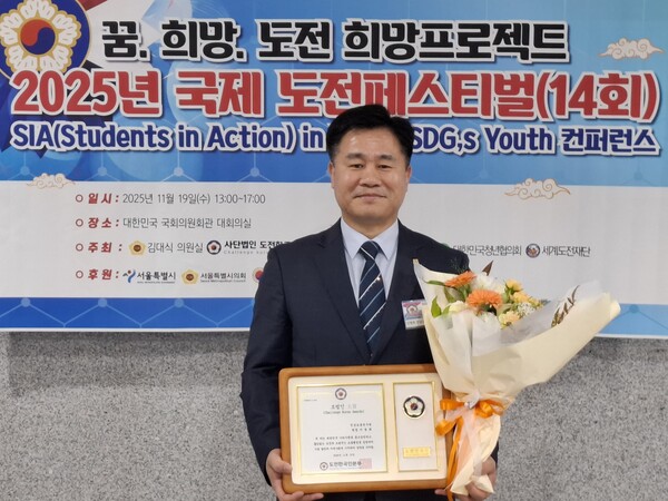 전라남도교통연수원은 이병희 원장이 19일 서울 여의도 국회의원회관에서 열린 도전한국인본부 외 4개 기관이 주최하고 서울특별시를 비롯한 5개 기관이 후원하는 2025년 국제 도전페스티벌에서 ‘모범인 대상(大賞)’을 수상했다고 20일 밝혔다.