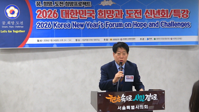 (사)도전한국인본부가 주최한 「2026 대한민국 희망과 도전 신년회·특강」이 1월 24일 서울특별시의회 대회의실에서 성황리에 개최됐다.